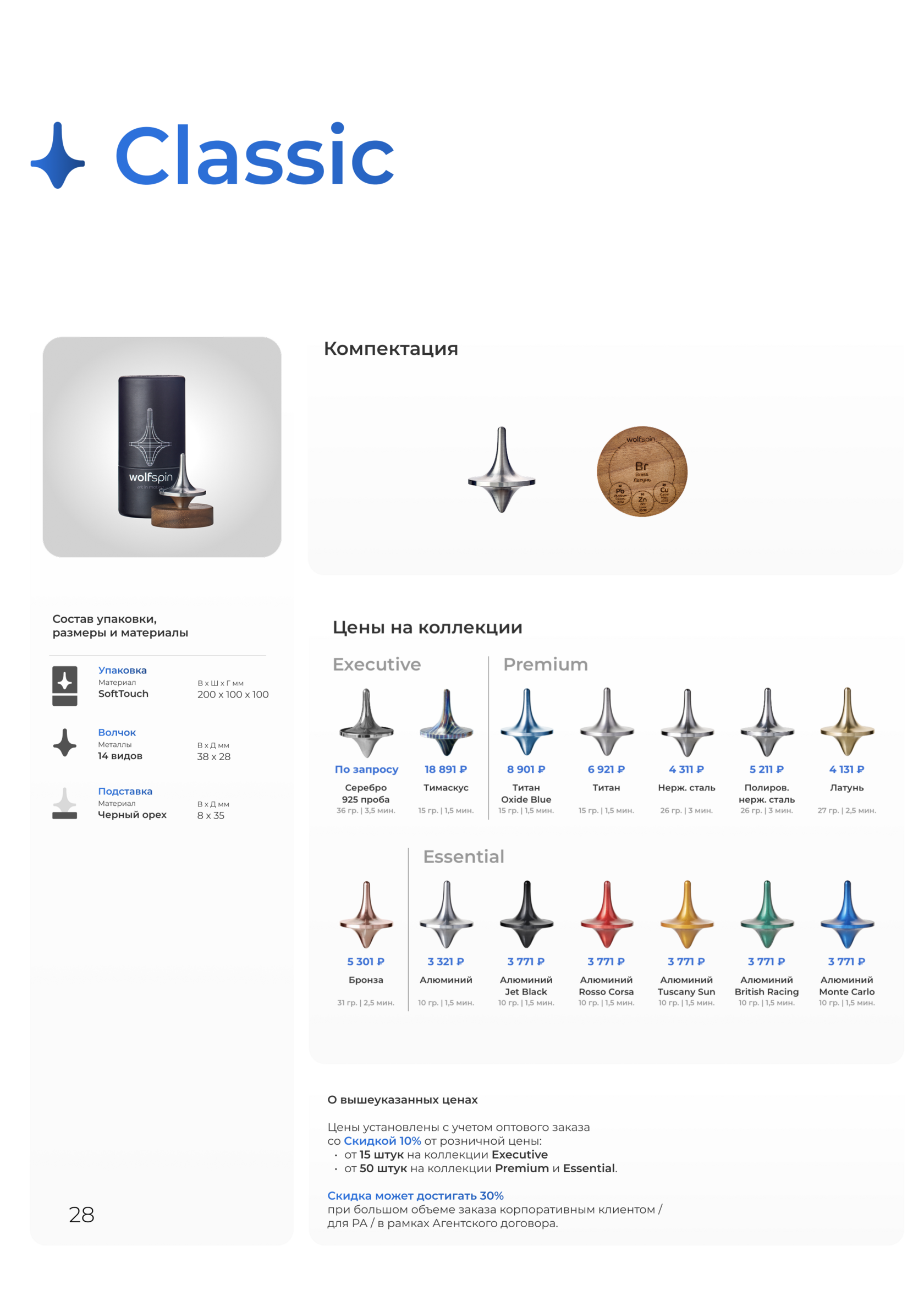 Евгений | Москва | Нержавющая сталь Спасибо команде Wolfspin за такой потрясающий продукт. Начиная с транспортировочной коробки, процесса распаковки и заканчивая самим волчком, всё дышит эстетикой и заботой о восприятии потребителя. Вообще такой подход к реализации изделия в России очень нов, возникают параллели с продукцией Apple. Я, как хронический перфекционист, удовлетворён на все 100%, а сам процесс кручения волчка - одно сплошное удовольствие!