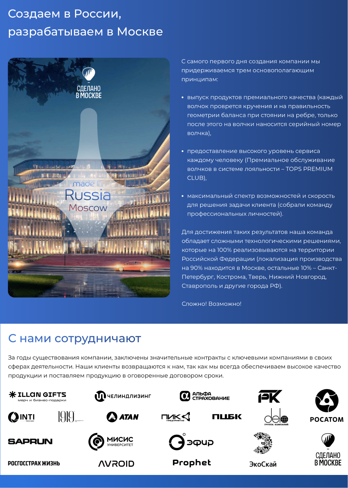 Отзывы наших клиентов придают стимул предоставлять высочайший сервис обслуживания в России от заказа до первого касания нашей продукции